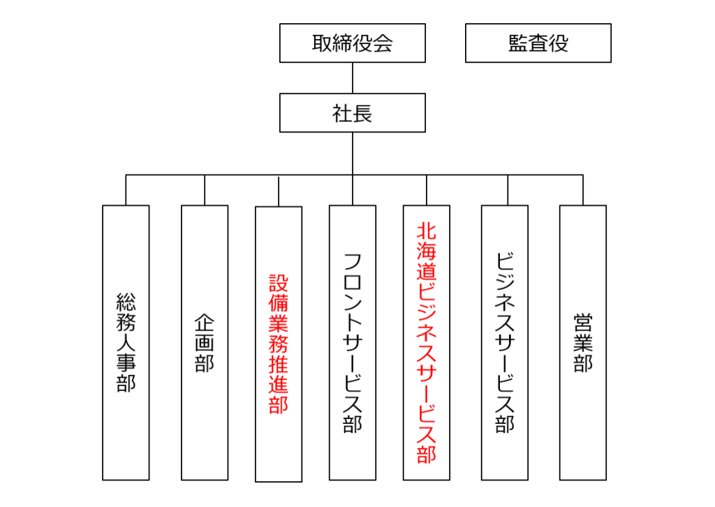 事業の変容への対応等を踏まえ、北海道サービス運営部を「北海道ビジネスサービス部」へ
